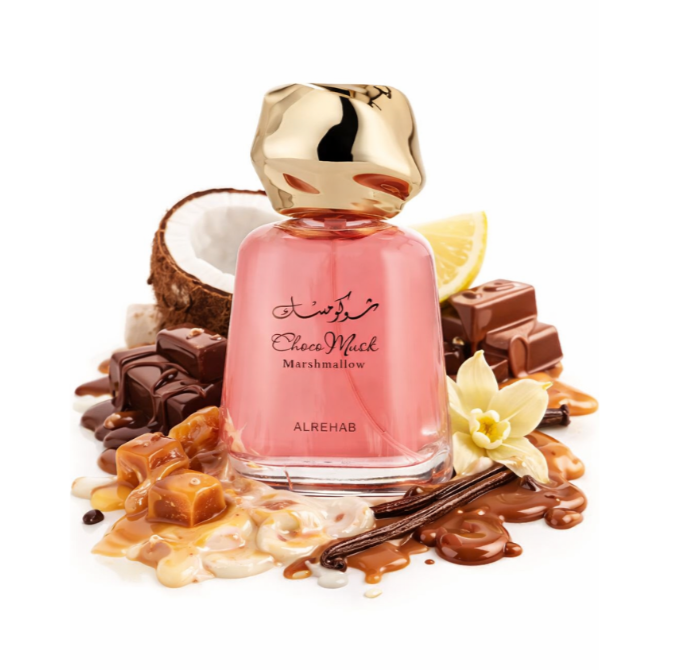 Choco Musk Marshmallow 100 ml by ALREHAB is an Oriental Vanilla gourmand fragrance that blends warmth and sweetness with an elegant touch. It opens with a refreshing balance of lemon, sweet toffee, and creamy coconut, then reveals a rich chocolate heart. The scent finishes with a warm, creamy vanilla base that provides long-lasting wear and a soft, comforting sweetness. Ideal for daily use and for lovers of smooth, sweet fragrances.